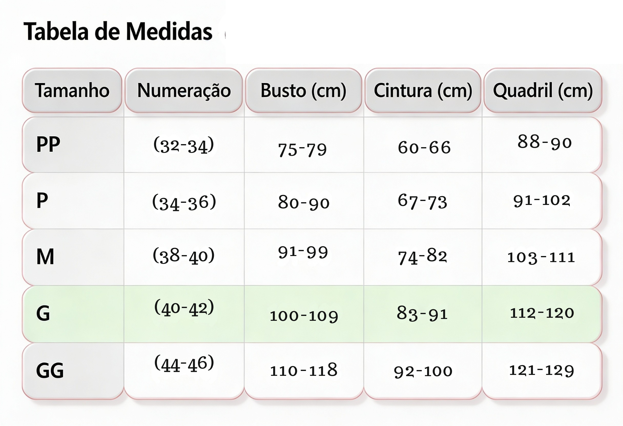 ✔ Modelagem pensada para corpos reais, inclusive GG